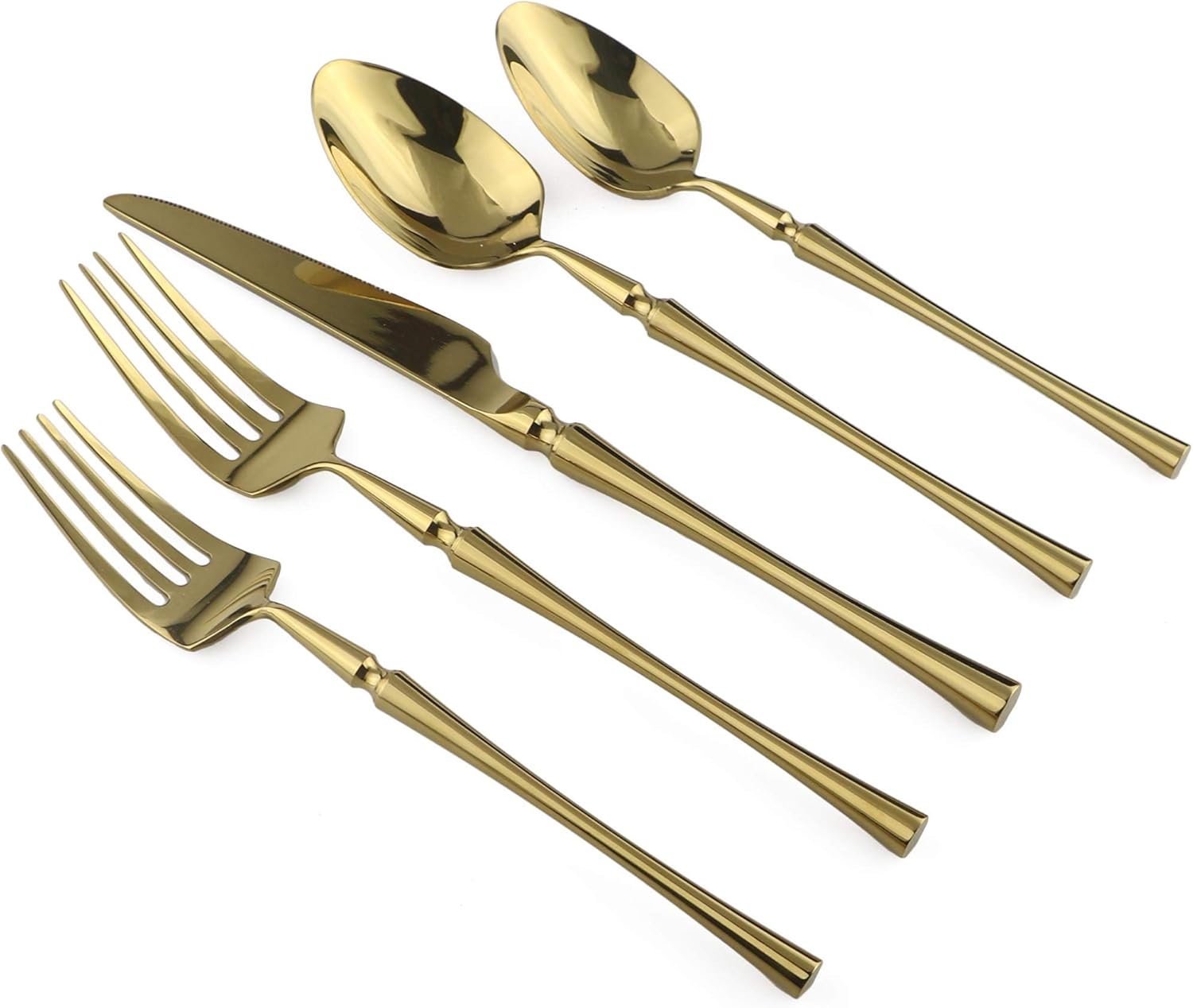Specification: Totally 20 pieces a set, Dinner Knife + Dinner Spoon + Dinner Fork + Dessert Fork + Dessert Spoon, 4 pieces of each. Top quality 18/10(304) stainless steel material for longer life use. Come with safe package with JANKNG gift box. Dinner Knife Dimensions: Length: 22.5cm / 8.86inch Weight: 70g / 2.47oz Dinner Spoon Dimensions: Length: 19.6cm / 7.72inch Weight: 55g / 1.94oz Dinner Fork Dimensions: Length: 20cm / 7.87inch Weight: 45g / 1.59oz Dessert Fork Dimensions: Length: 18.6cm / 7.32inch Weight: 35g / 1.32oz Dessert Spoon Dimensions: Length: 18cm / 7.09inch Weight: 45g / 1.59oz NOTE: The tableware can not soak in the water with a long time(Especially in Brine),when you finished your meal, you must immediately clean the tableware and use a towel to dry the tableware (The surface layer plating protective layer, so you can't use a steel ball). The save method of the tableware is to be in a dry, clean environment. The tableware passed the safety inspection ,food safety,any one person can be safely used (including myself also use this tableware)