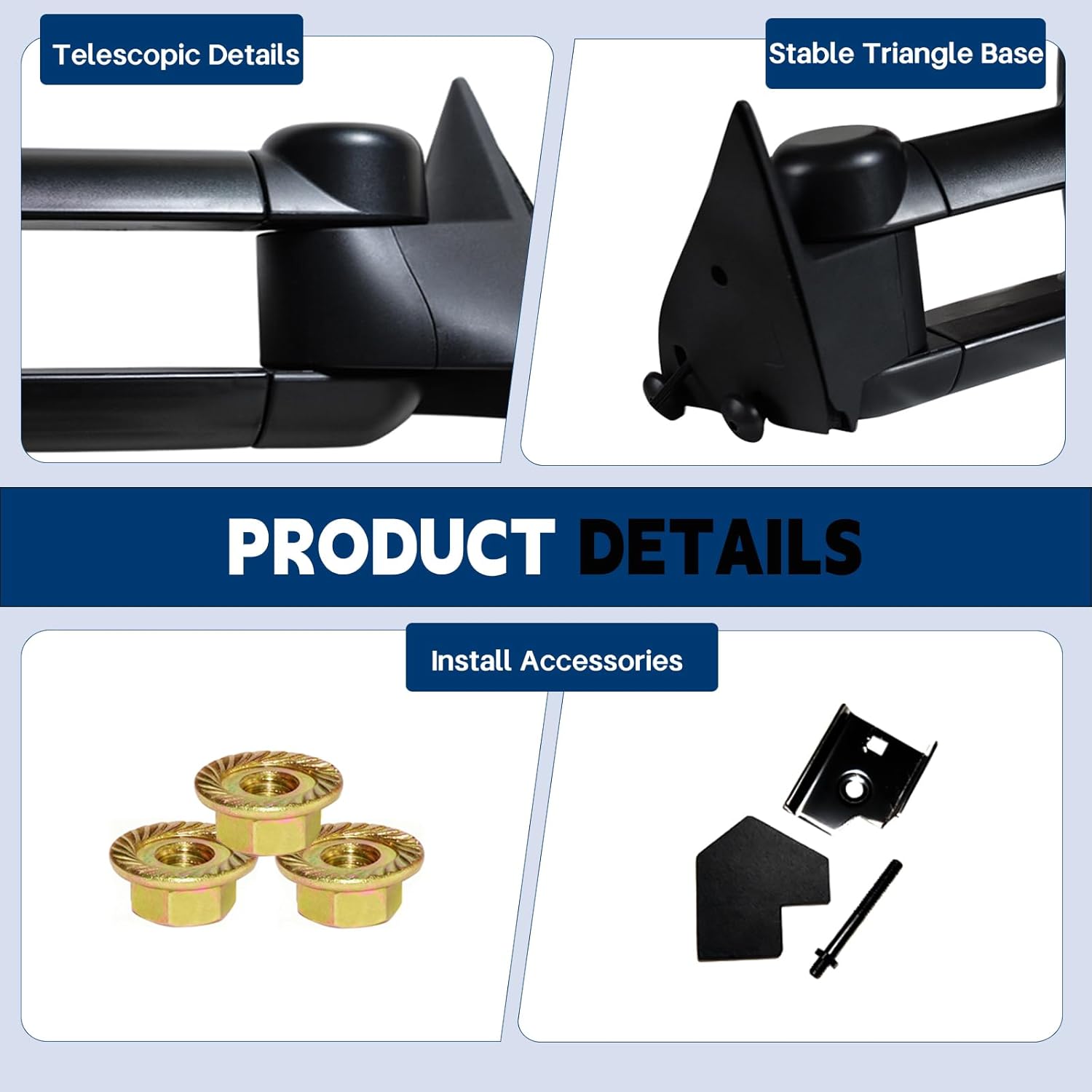 | Included Components | A Pair of towing mirrors (Include left side and right side) |