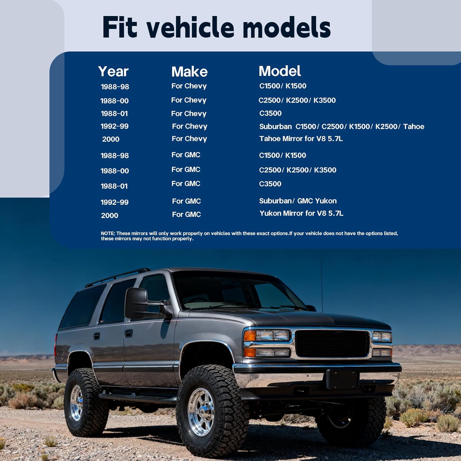 | Compatible with Vehicle Type | Chevy, GMC C1500/K1500, C2500/K2500/K3500, C3500, Suburban C1500/C2500/K1500/K2500/Tahoe, Yukon 1988-2000 (V8 5.7L) |