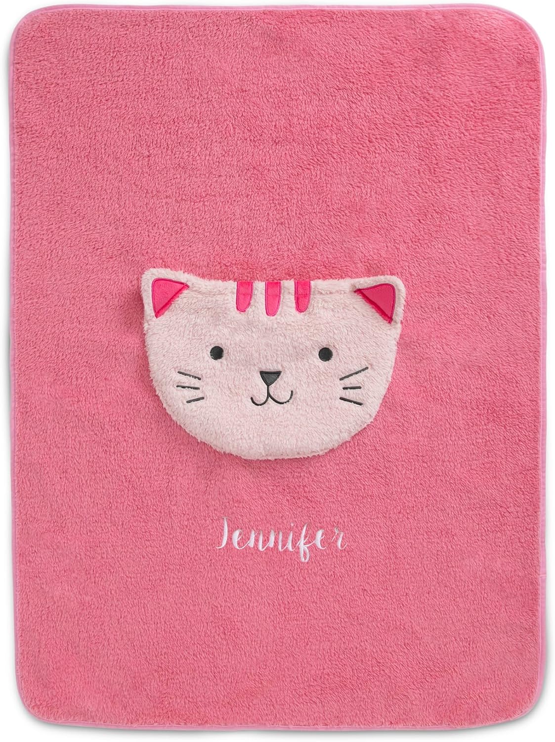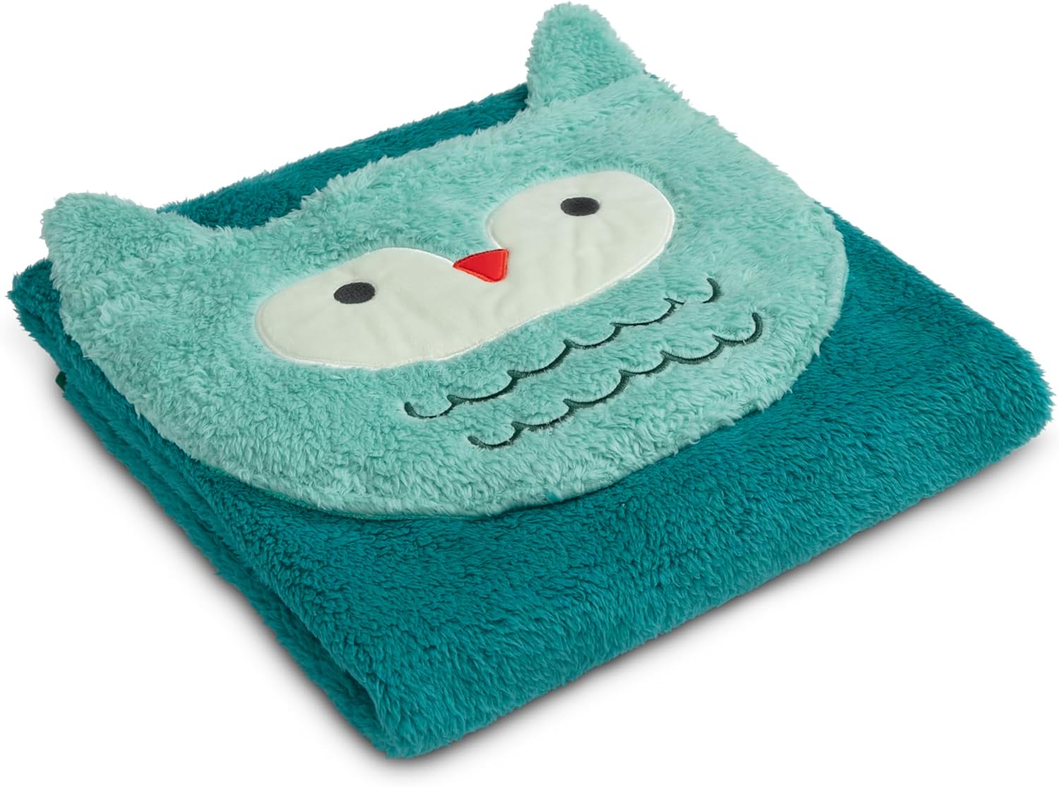 A playful and stylish accessory for naptime and snuggle sessions, this Owl Personalized Sherpa Throw Blanket with Storage Pocket by Delta Children gets an extra cute touch thanks to its adorable animal detailing. Embroidered details and two 3D owl ears on the front pocket adds tons of character while also providing a convenient place to store your little one’s favorite toy. And when your child is done relaxing, just fold the blanket inside the pocket and easily transport with its durable carrying handle. Personalize it with their name for an extra-special touch. Personalization is centered under the animal detailing.