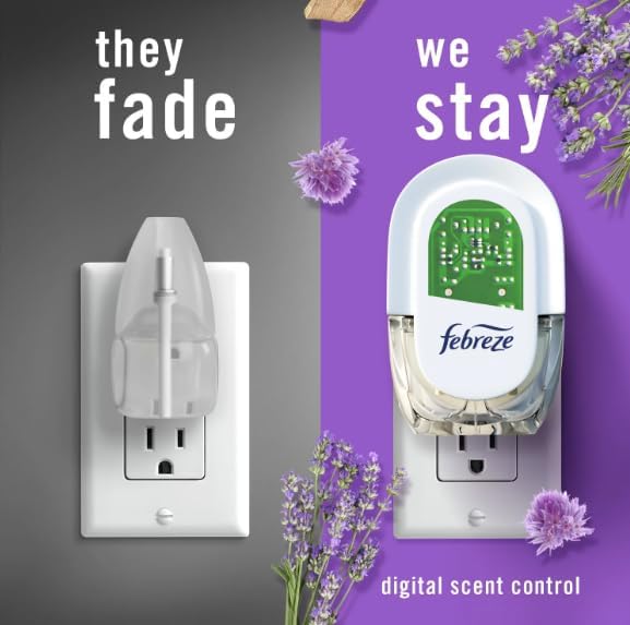 Have you experienced your plug air freshener scent fading? Good news: F.e.b.r.e.z.e Fade Defy PLUG Air Freshener stays true to its name, delivering a first day fresh that lasts a full 50 days (on low setting). Ready to hit refresh and be an A+ odor fighter? Just refill the F.e.b.r.e.z.e Fade Defy PLUG and plug it into any outlet (they'll even rotate if your outlet is upside down) in any high-traffic area of your home... the kitchen, bathroom, or anywhere else odors like to linger. Bonus? When it's time for a refill, the automatic air freshener will let you know with its handy low-level indicator light. And this scent refill pack comes with three Fade Defy PLUG refills so you can keep that freshness going. With the calming scent of Mediterranean Lavender, you can enjoy a delightful floral breeze of freshness. Looking for an instant burst of fresh on funky fabrics? Give F.e.b.r.e.z.e Fabric Refresher a try.
