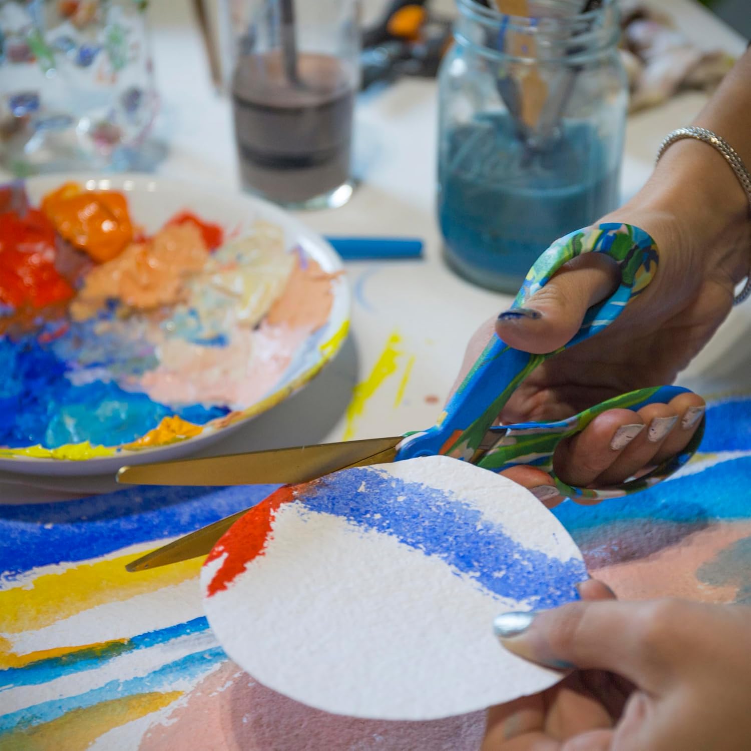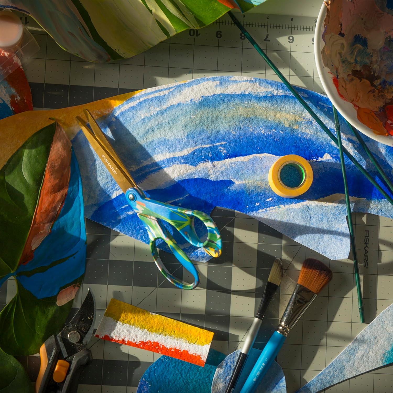 Add adventure to your everyday with Created with Fiskars Scissors in Avant Garden by Wife NYC's Sophie Parker, featuring a prism of hand-painted strokes dancing across tropical leaves. “Each day I enter the studio with a sense of playfulness and open mindedness—ready to see where nature leads me,” writes Parker. Enjoy the same premium performance and exceptional comfort as The Original Orange-Handled Scissors, with high-grade stainless steel blades, a precision-ground edge that cuts all the way to the tip and an ergonomically sculpted handle for unmatched control. Looking for creative gifts for her or unique holiday gift wrapping supplies? Look no further! These fun scissors are sure to please.