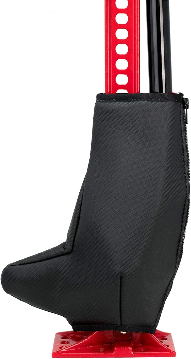 Keep your Hi-Lift Jack Running Gear (or lifting assembly) protected from mud, dirt and grime. The Hi-Lift Running Gear Jack Cover is designed to greatly reduce the amount of dirt and mud that can accumulate in the working mechanism of the Hi-Lift Jack. Easy On, Easy Off Zipper Design Made with Marine Grade Vinyl (UV Protected, Mold and Mildew Resistant) Features carbon fiber embossing and PVC Hi-Lift logo patch Fits all Hi-Lift Jack Models The Running Gear Jack Cover (Part# RGJC) is a substantial improvement over, and replaces, the Neoprene Jack Cover (Part# NJC). Improved Features: High quality zipper Stronger material resists fading and tearing Improved fit