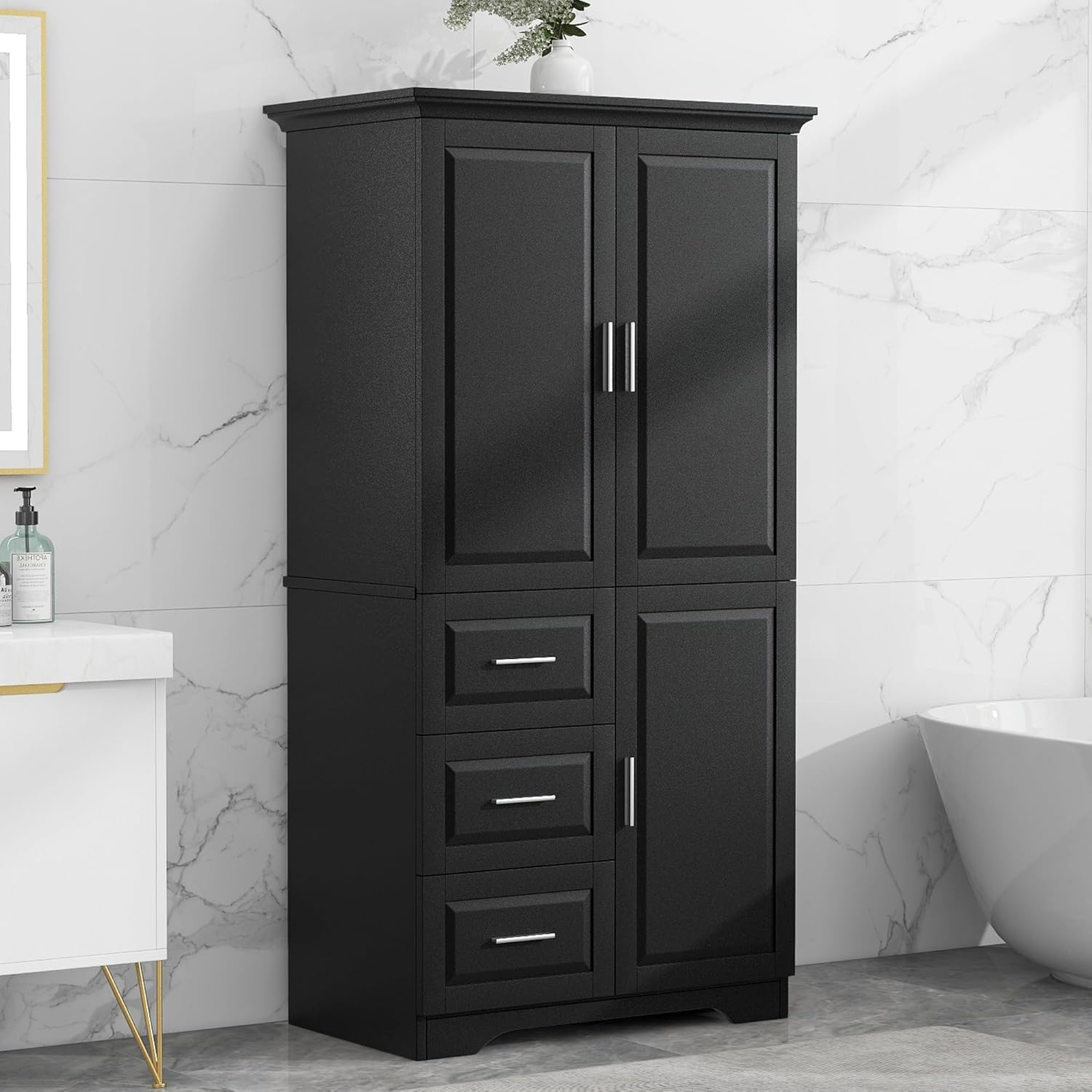 More Information Material MDF board, painted finish Shape Rectangle Capacity 35lbs/shelf, 20lbs/drawer Adjustable Shelf Yes Number of Drawers 3 Number of Doors 2 Anti-dumping Device Yes Package Include Cabinet, hardware, instruction Assembly Required Yes Country of Origin China Certificate CARB P2