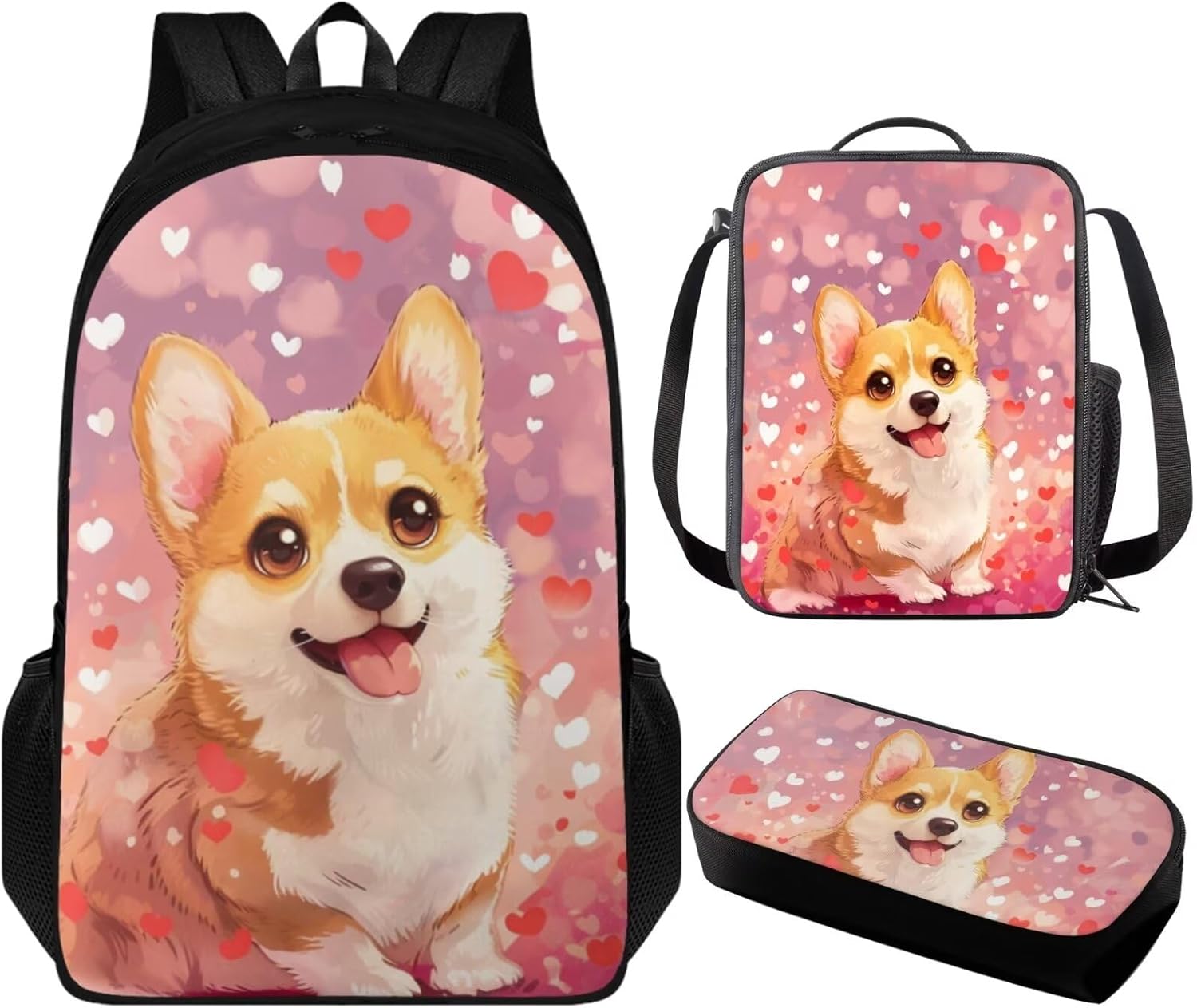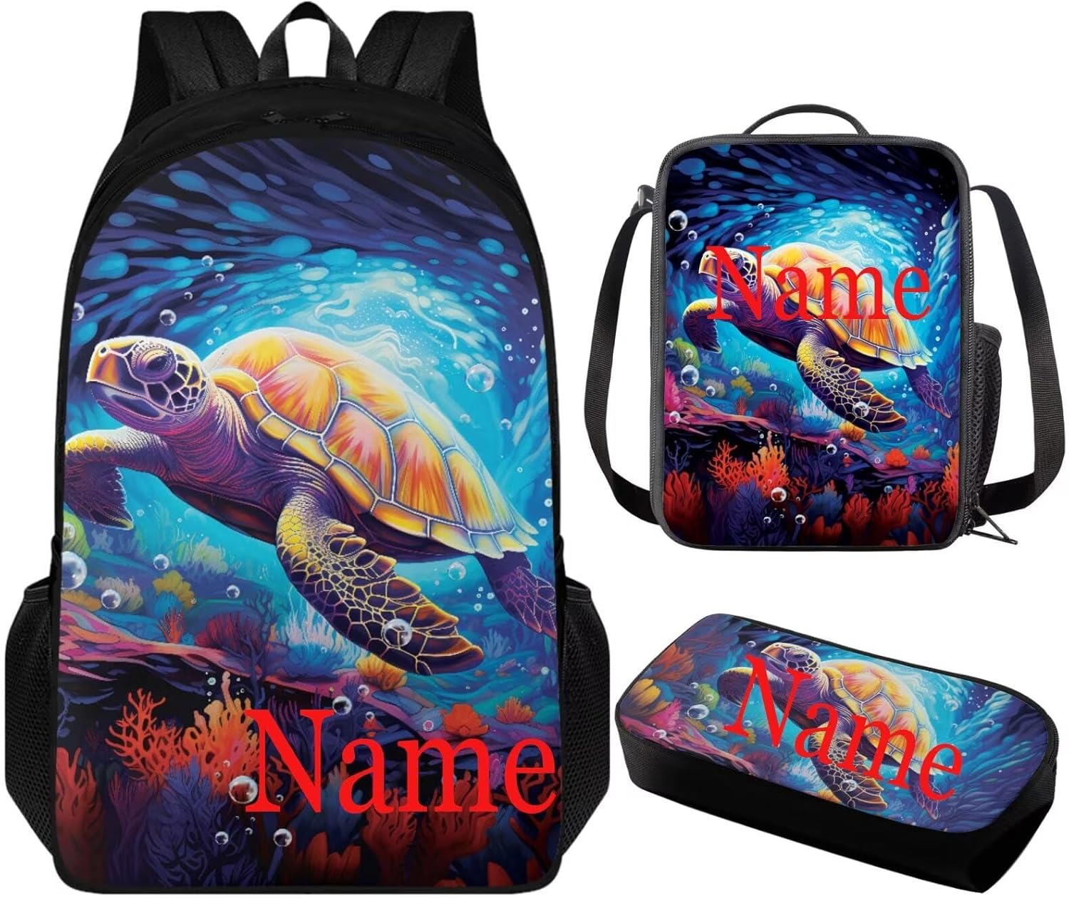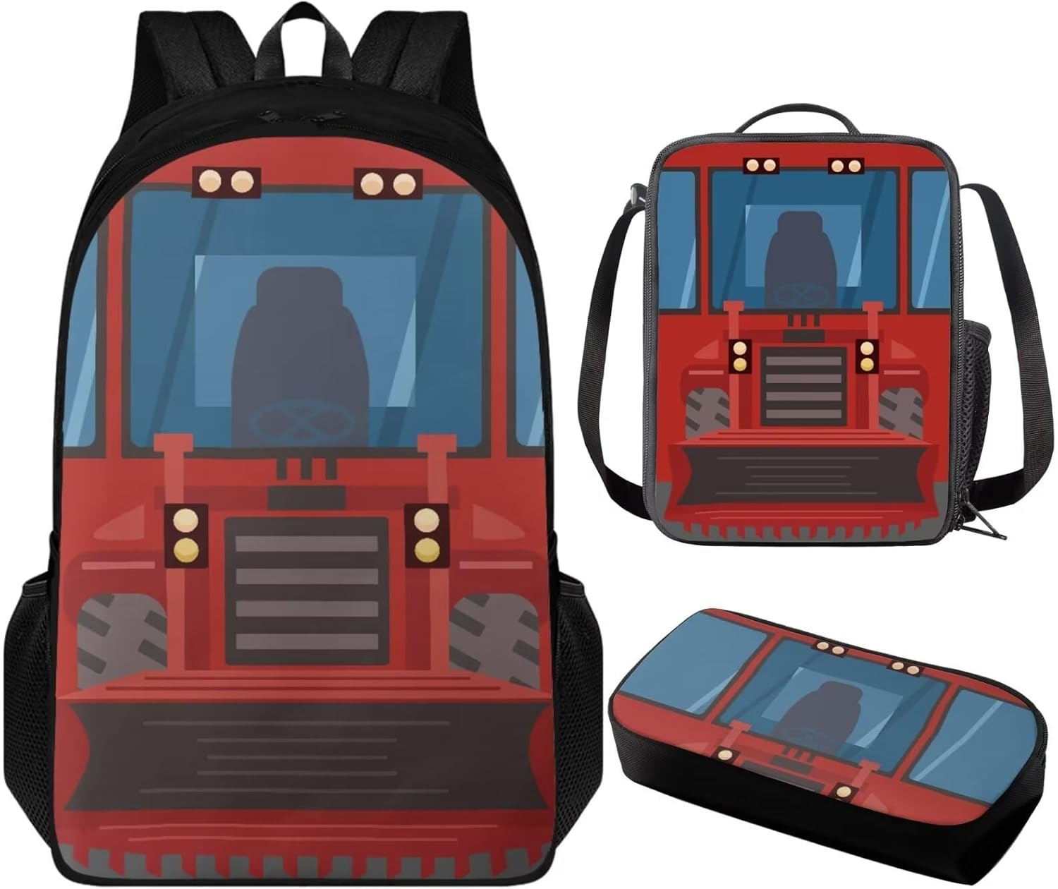 KIDS BACKPACK 3-PIECE SETS Include a school bag, a lunch bag and a pencil case. Recommended age: Over 3 Years Old. High quality material, made of polyester, water resistant and easy to clean. Backpack Details: Bookbag Size: 11*5.5*17.3 Inch Large capacity design meet daily learning needs, easily fits books, water bottle, umbrella, school supplies and so on. Double smooth zipper and side pockets for added practicality. Breathable adjustable padded shoulder straps and handles for comfort. Lunch Box Details: Lunch bag size: 7*2.7*9 Inch 1 mesh bottle pocket on one side to hold small forks, knives and spoon handles. Can be hand-carried or slung over the shoulder, convenient for your carrying. Lunch bag insulated easily fits fruits, snacks, cutlery, etc. Pencil Case Details: Pencil pouch size: 8.*1.5*3.9 Inch The pen bag can also be used as a cell phone pouch, cosmetic bag, coin purse and office stationery organizer for office, home, travel and shopping. Multi-scenario application, a stylish companion for school, weekend trips, daily travel, and short-term business trips. This school backpack set is a perfect birthday, back to school season, Christmas, Thanksgiving and New Year's gift for your child express your heart for your child. It can be personalized according to preference, there are a lot of vibrant colors to choose from.