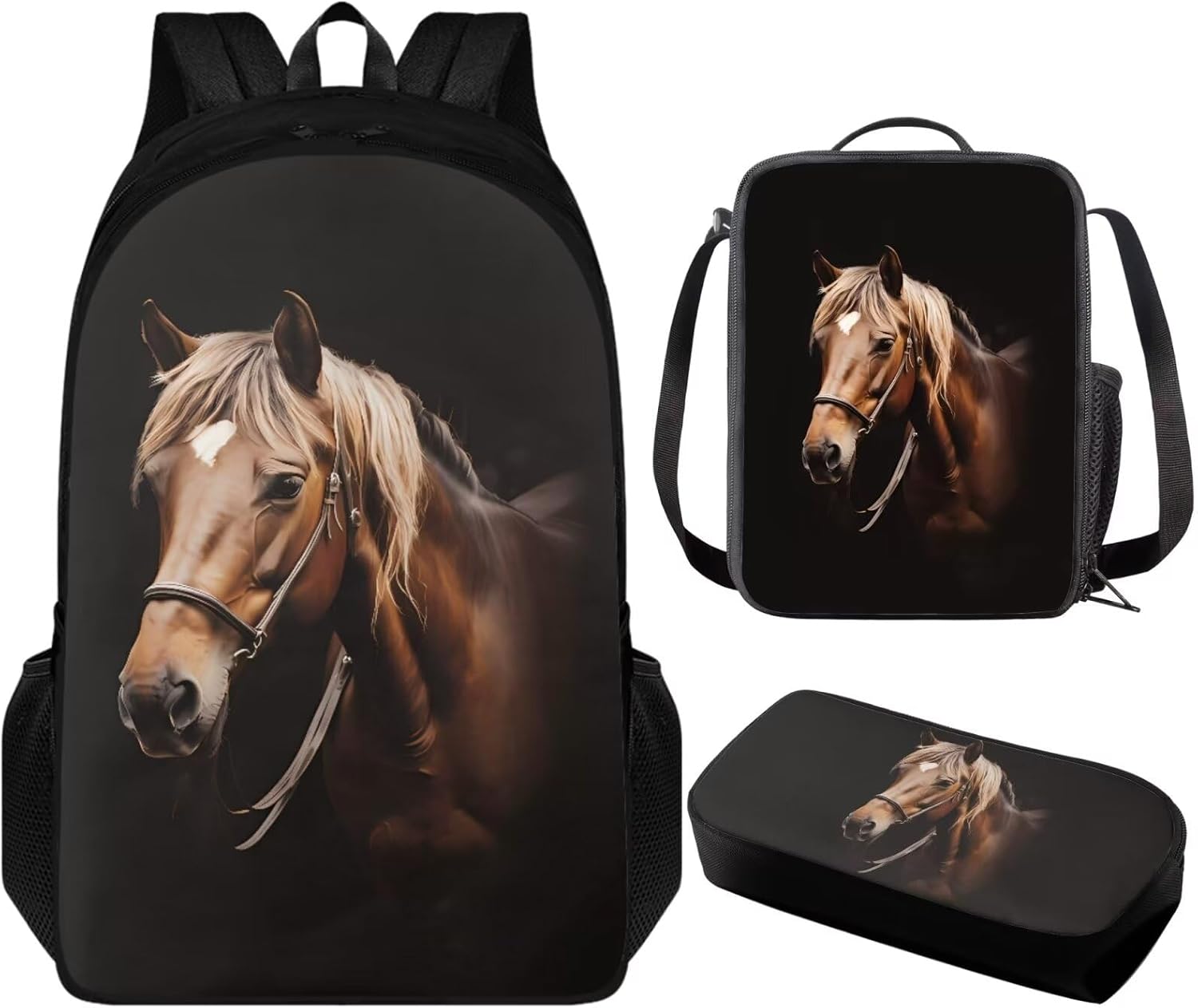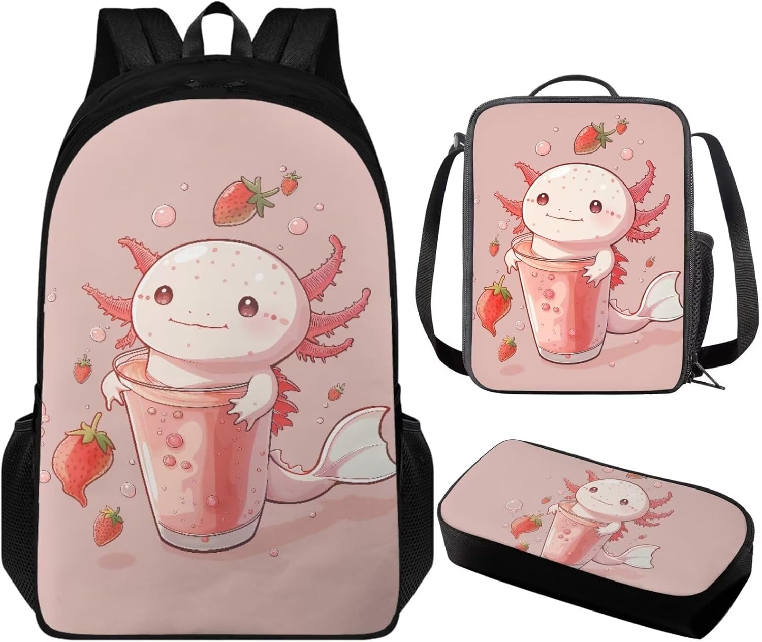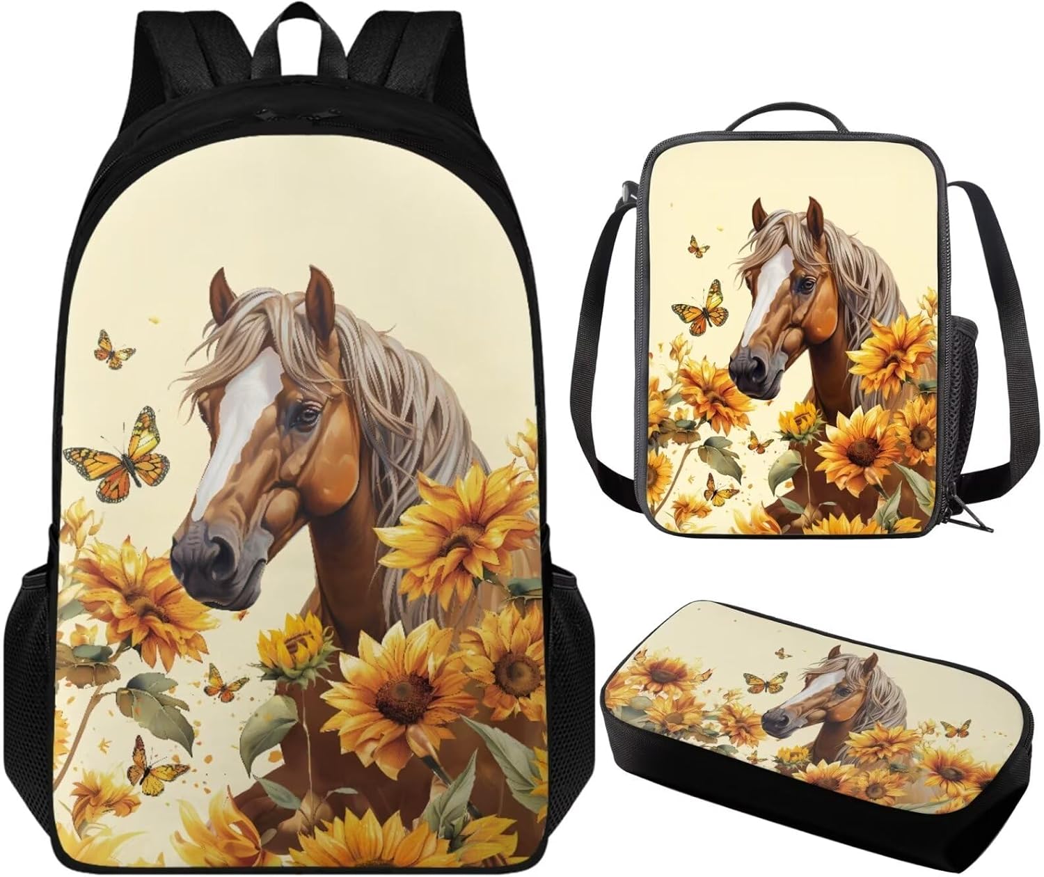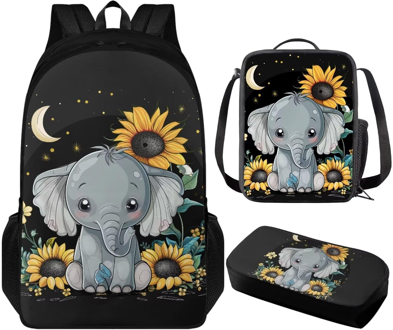 KIDS BACKPACK 3-PIECE SETS Include a school bag, a lunch bag and a pencil case. Recommended age: Over 3 Years Old. High quality material, made of polyester, water resistant and easy to clean. Backpack Details: Bookbag Size: 11*5.5*17.3 Inch Large capacity design meet daily learning needs, easily fits books, water bottle, umbrella, school supplies and so on. Double smooth zipper and side pockets for added practicality. Breathable adjustable padded shoulder straps and handles for comfort. Lunch Box Details: Lunch bag size: 7*2.7*9 Inch 1 mesh bottle pocket on one side to hold small forks, knives and spoon handles. Can be hand-carried or slung over the shoulder, convenient for your carrying. Lunch bag insulated easily fits fruits, snacks, cutlery, etc. Pencil Case Details: Pencil pouch size: 8.*1.5*3.9 Inch The pen bag can also be used as a cell phone pouch, cosmetic bag, coin purse and office stationery organizer for office, home, travel and shopping. Multi-scenario application, a stylish companion for school, weekend trips, daily travel, and short-term business trips. This school backpack set is a perfect birthday, back to school season, Christmas, Thanksgiving and New Year's gift for your child express your heart for your child. It can be personalized according to preference, there are a lot of vibrant colors to choose from.