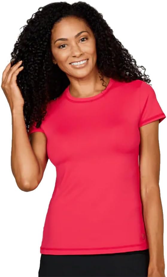The Sofibella UV Colors Womens Short Sleeve Shirt adds a fun pop of color to your tennis outfit. This fabric comes with UPF 50 sun protection and will feel cool against the skin. The UV Colors short sleeve features anti-pilling, quick-drying fabric for keep you moving all over the court.