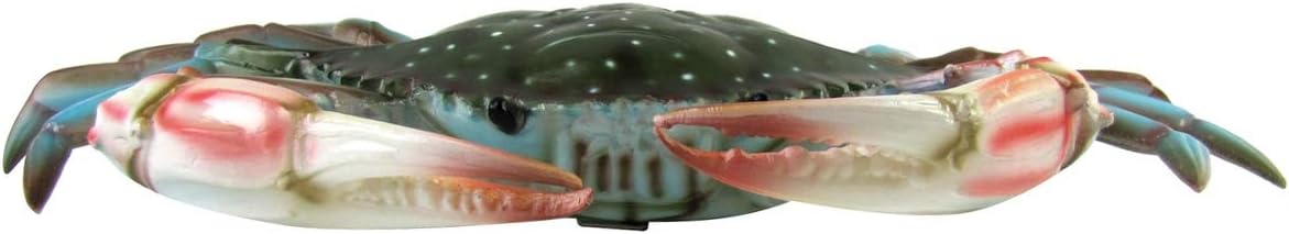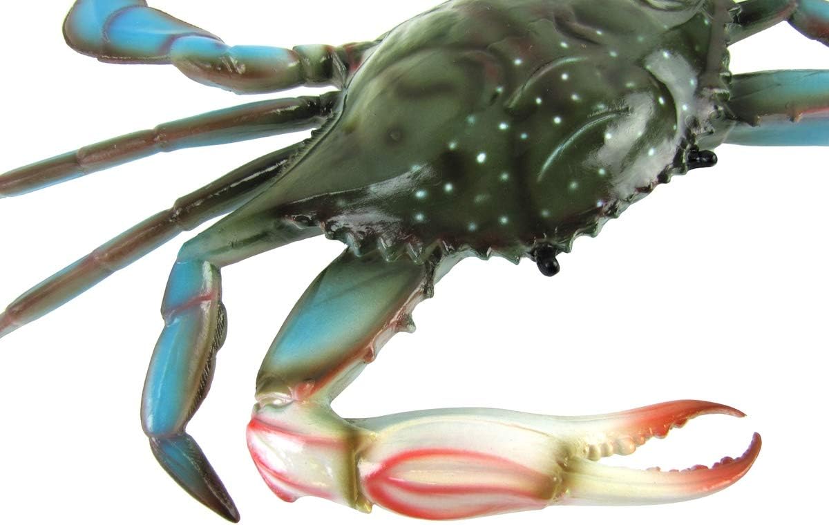 Add some sea life decor to your beach home with this realistic blue crab wall mount plaque. Made from a hardened polymer, this large, 17" nautical decor features vivid colors and looks just like a real Maryland blue crab with blue legs, dark cephalothorax, and white claws with red pincers. A light clearcoat finish protects the crab from scratches and other surface blemishes. Add one of these big lifelike blue crabs to your tiki bar or seafood restaurant for new coastal decor or give it as a gift to seafood-loving friends and family members. Blue crab wall decor measures approximately 17" long, 12" wide, and 2 1/2" tall. As with all our items, this detailed wall art ships brand new with our 100% customer satisfaction guarantee.