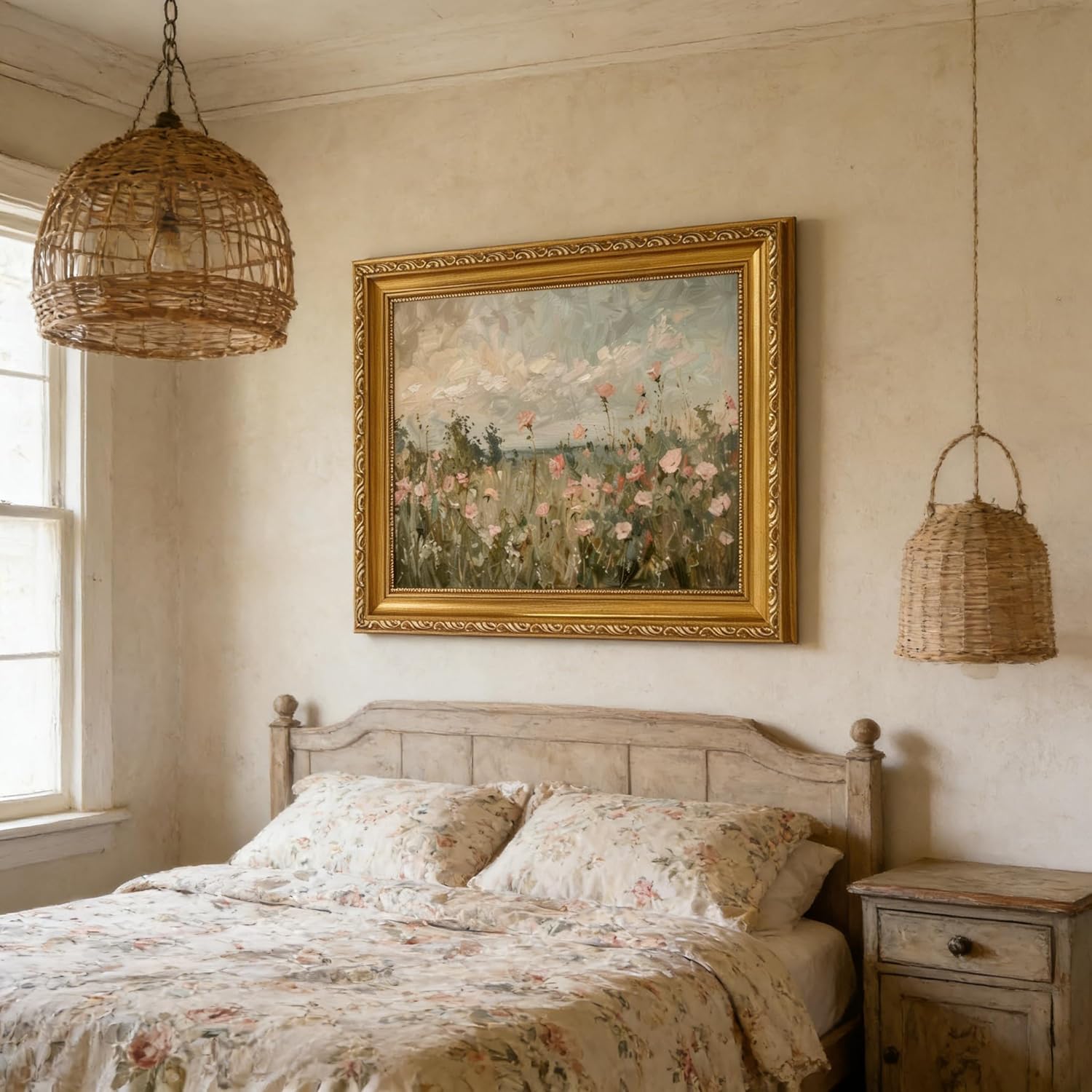 gold framed wall art Wildflower Field wall art vintage Wildflower Landscape wall art framed Cottagecore Wildflower canvas wall art